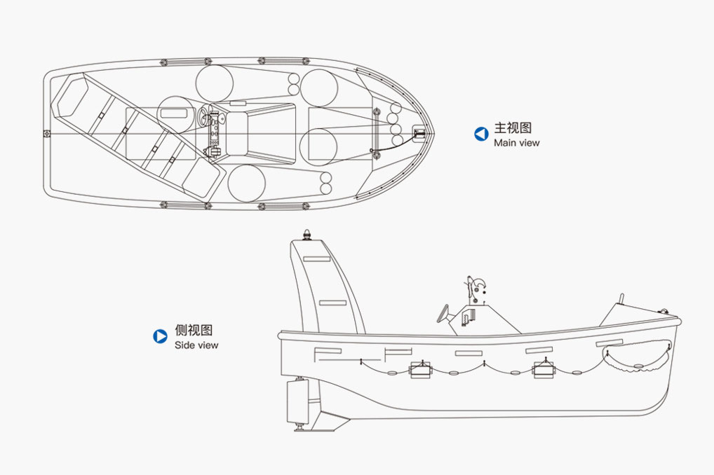 本艇的設(shè)計、制造和試驗完全符合MSC.226(82)、MSC.274(85)、MSC.321(89)和MSC.323(89)修正的MSC.81(70)《經(jīng)修正的就生設(shè)備試驗建議》第1部分;1974年國際海上人命安全公約及其修正案第Ⅲ章第21、31、34條;經(jīng)MSC.218(82)、MSC.272(85)、MSC.320(89)修正的MSC.48(66)《國際救生設(shè)備規(guī)則》第Ⅴ章的要求; 艇體為阻燃型玻璃鋼;供人員行走的表面均為防滑面;內(nèi)殼與外殼的聚氨酯泡沫給救助艇提供足夠的浮力。如果在水線下面的船體有損壞,浮體仍可提供足夠的浮力使艇在安全水平面上漂浮。救助艇兩側(cè)設(shè)有鋼性扶手以便乘員上下,自滔式甲板確保進入艇內(nèi)的海水快速排放;艇上裝有手搖泵,用于排除艇內(nèi)積水;艇上裝有不銹鋼吊鉤系統(tǒng),采用吊艇索下放或回收;救助艇配備自扶正空氣箱,滿足客貨滾裝輪的使用要求;本艇可滿載全速航行大于4小時,航速可達到6節(jié)以上。